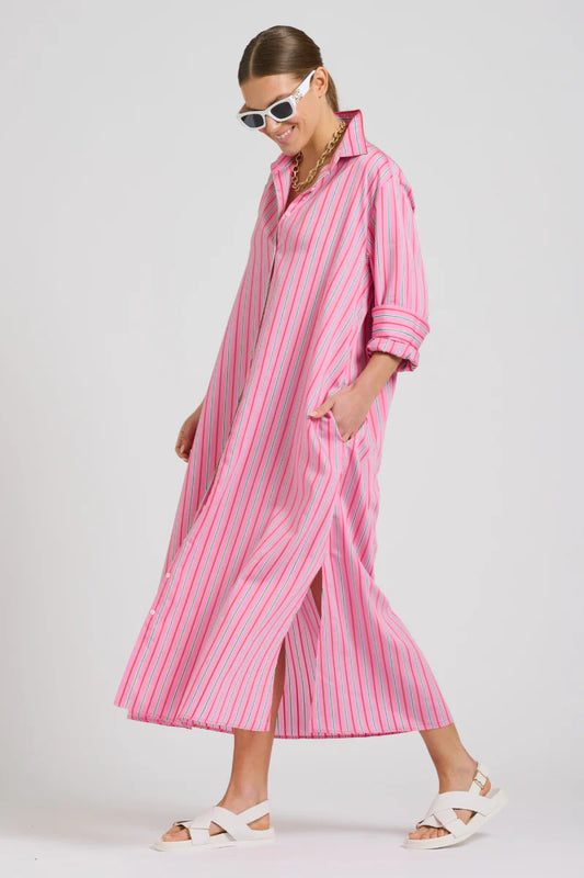 Luna Oversized Long Shirtdress - Pink Combo Stripe