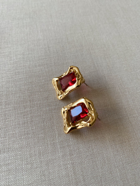 Gia Gold Earrings - Red