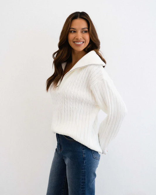 Half Zip Cable Jumper - Ivory