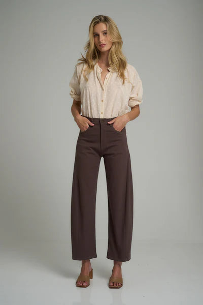 Luxe Stretch Cupro Slim Leg Gathered Ankle Pant Crozet - Olive