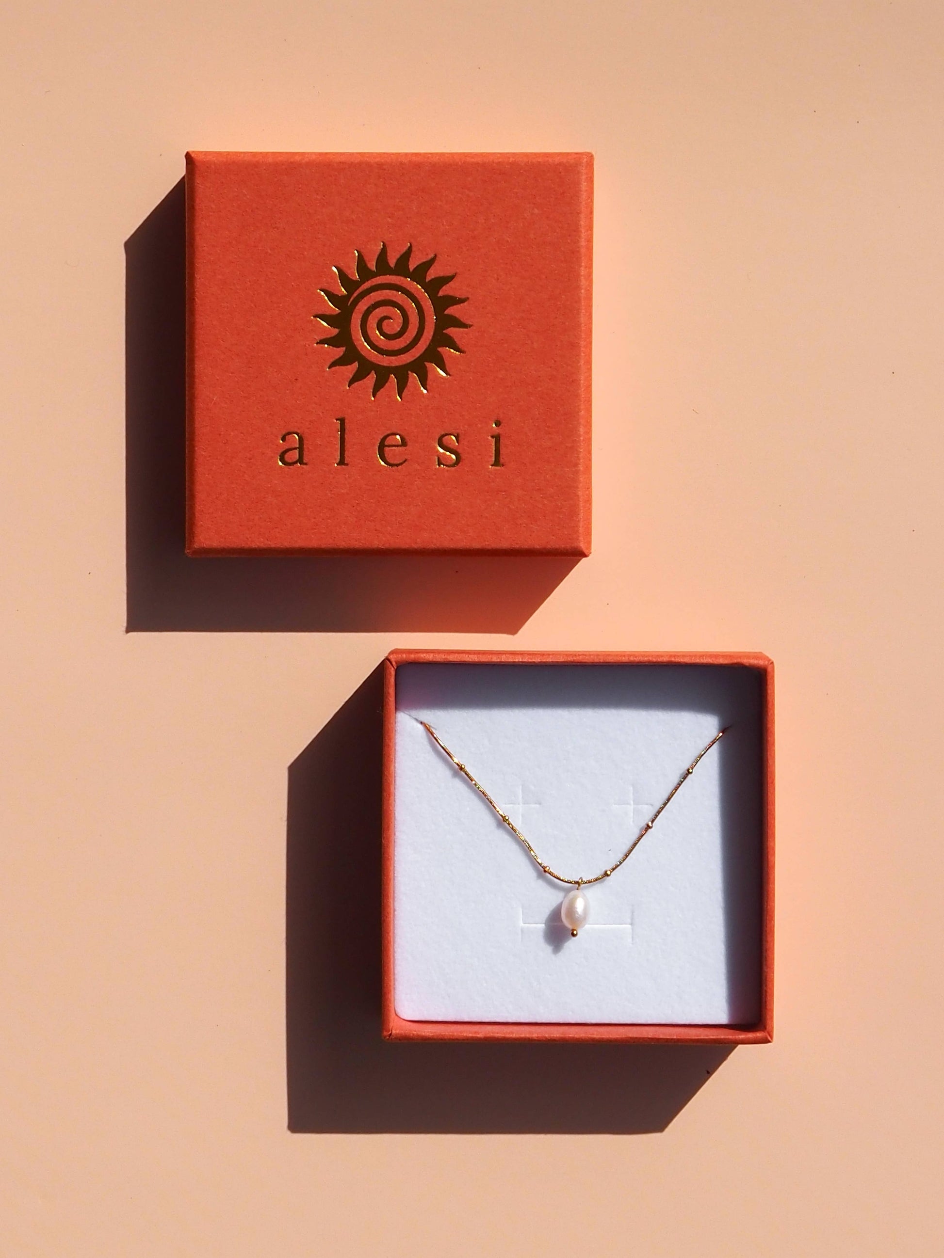 Alesi Jewellery arrives individually packaged in beautiful Alesi branded jewellery boxes ready for display & gifting. You're welcome to merchandise as you please - the collection looks beautiful against Limestone! With your first order you'll receive signage for in-store merchandising.