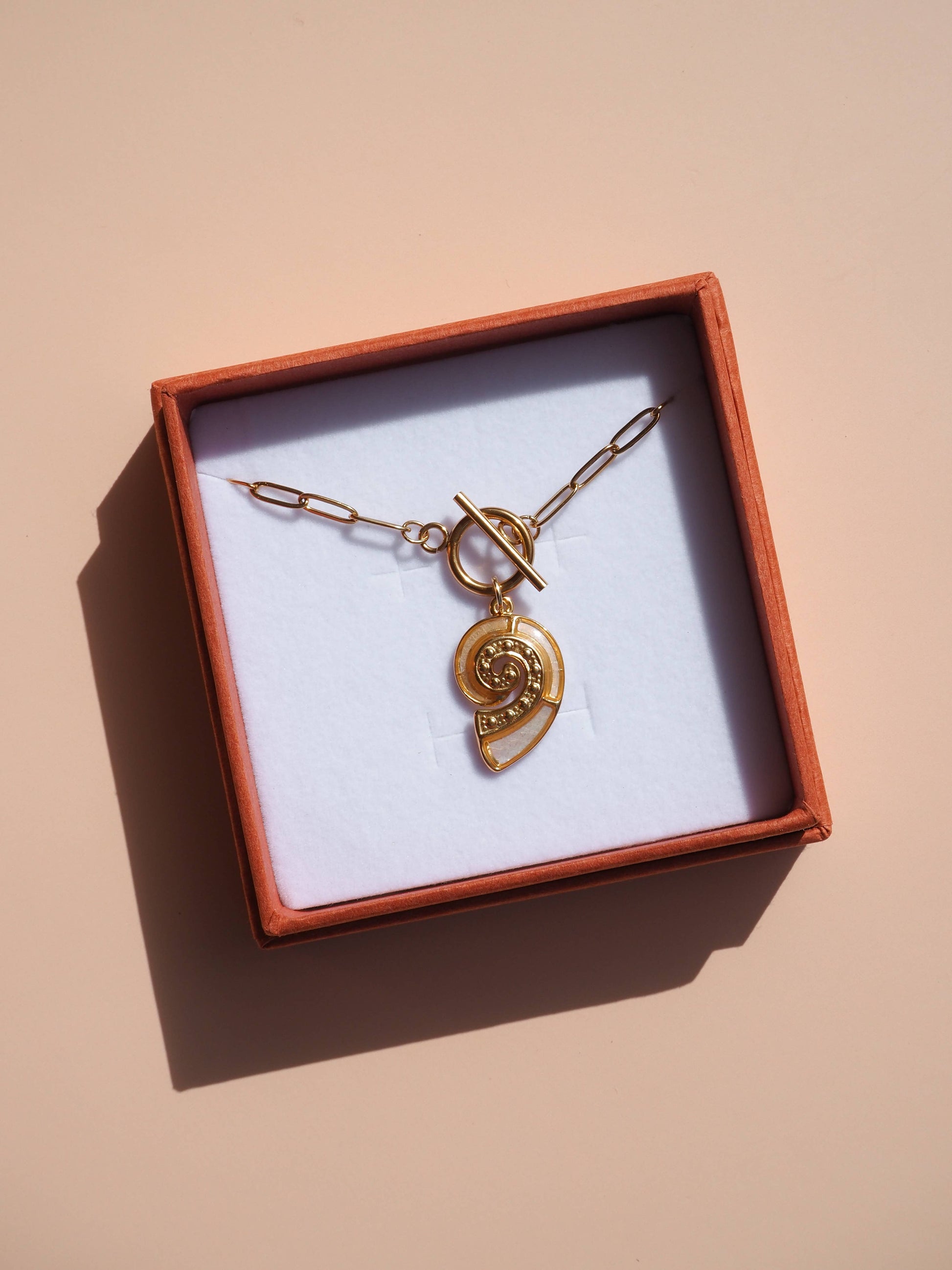 18K Gold MOP Spiral Seashell Necklace Paperclip