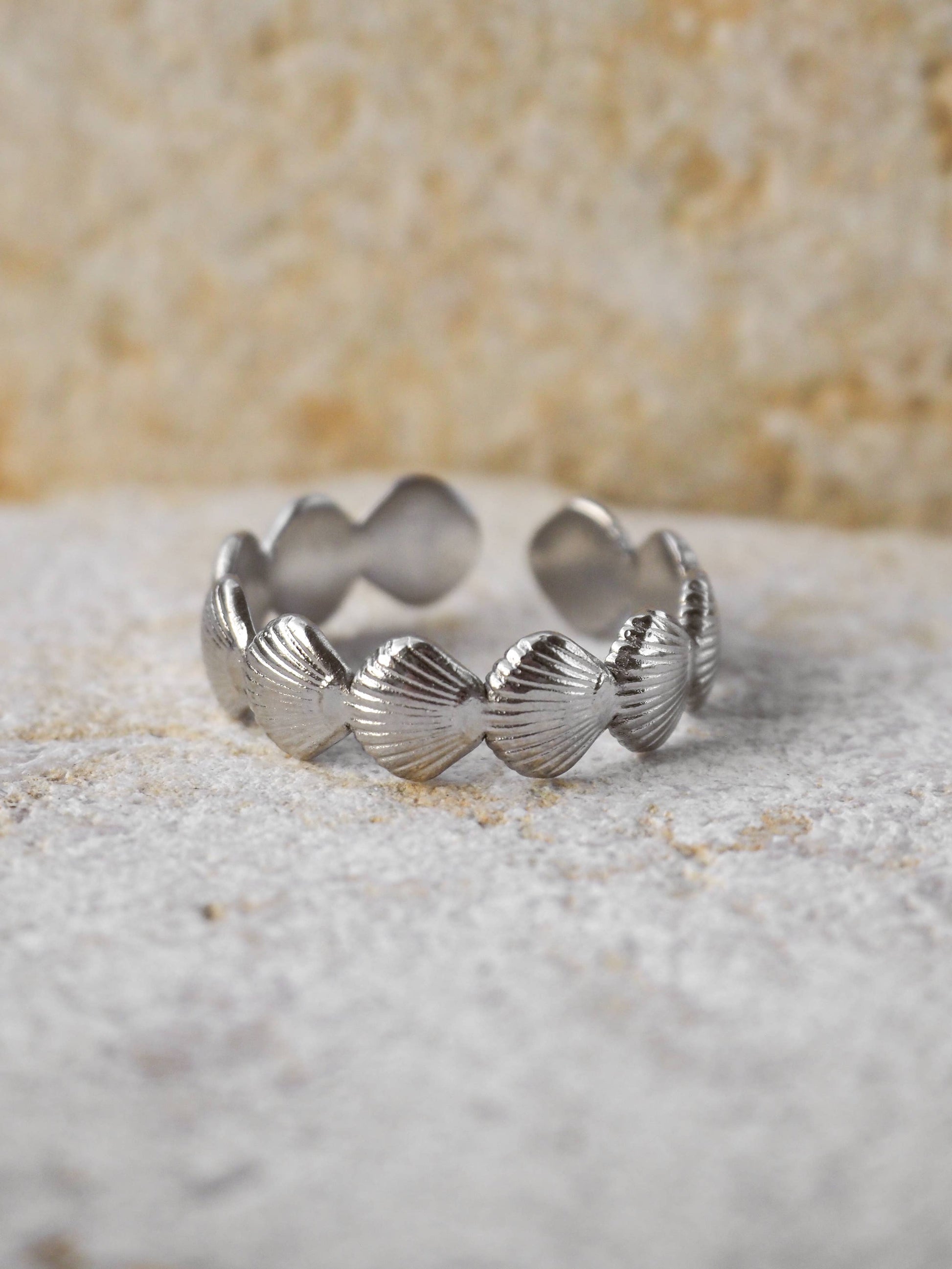 18K Gold Seashell Ring Adjustable: (Silver) Surgical Steel