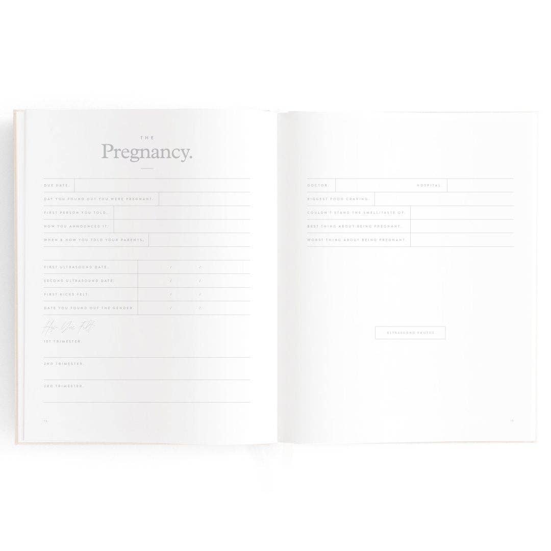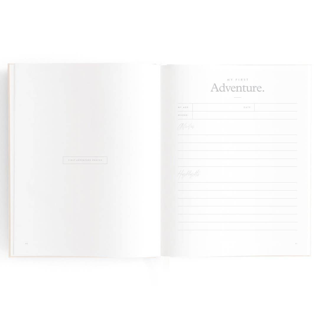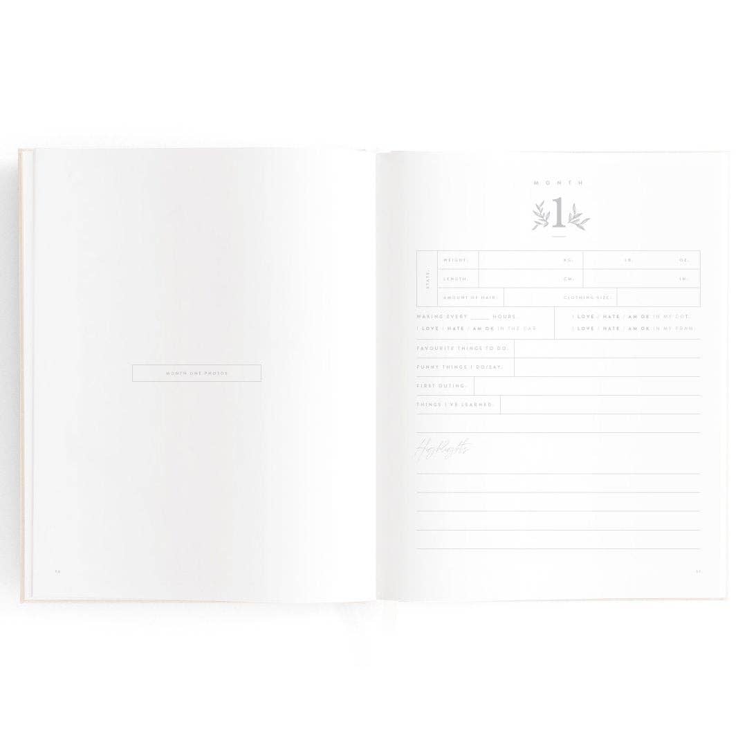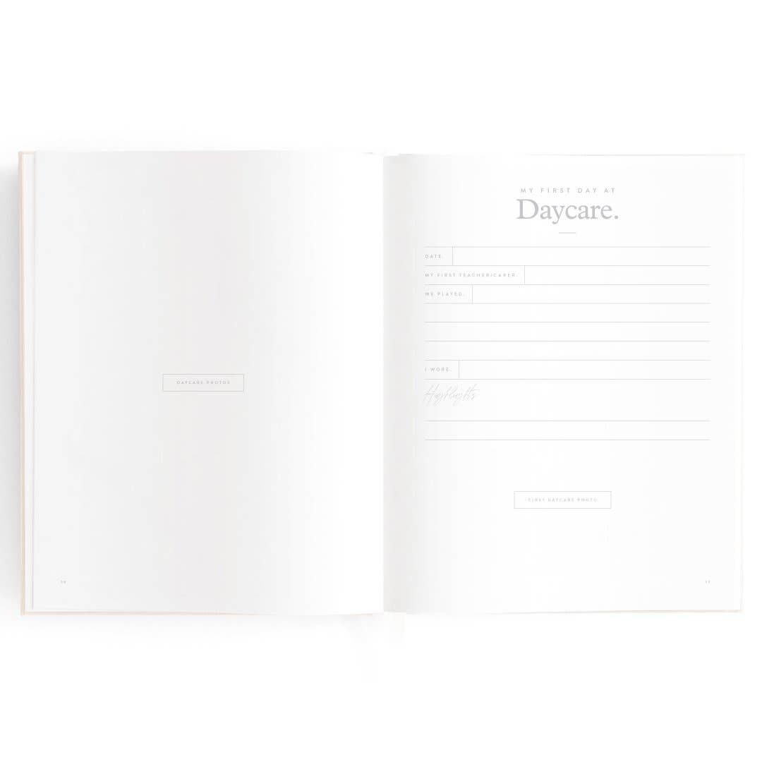 280 x 220mm / 11 x 8.6". A beautiful keepsake for the whole family to enjoy. Includes: important milestones and firsts, family profiles, family tree and travel map, playgroup and daycare through to kindy and school years, time capsule, nicknames and celebrations, pets, friends, birthdays and more. 160 pages. Gold foil stamped buttermilk (cream) linen cover. White grosgrain ribbon. 2mm foil stamped hard cover, lay-flat binding. Gold foil end pages and premium 115gsm FCS-certified acid-free paper. Packaged in a cello sleeve with gold foil bellyband. Designed in Australia, printed in China.