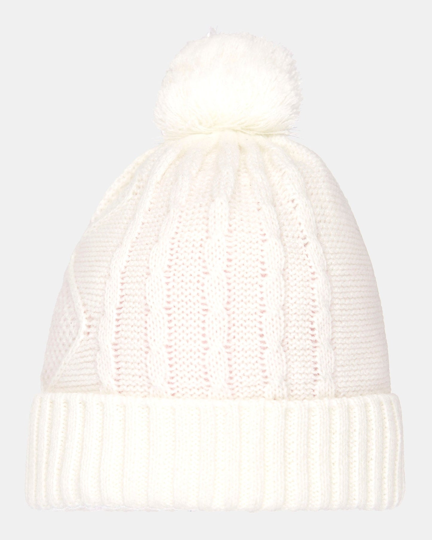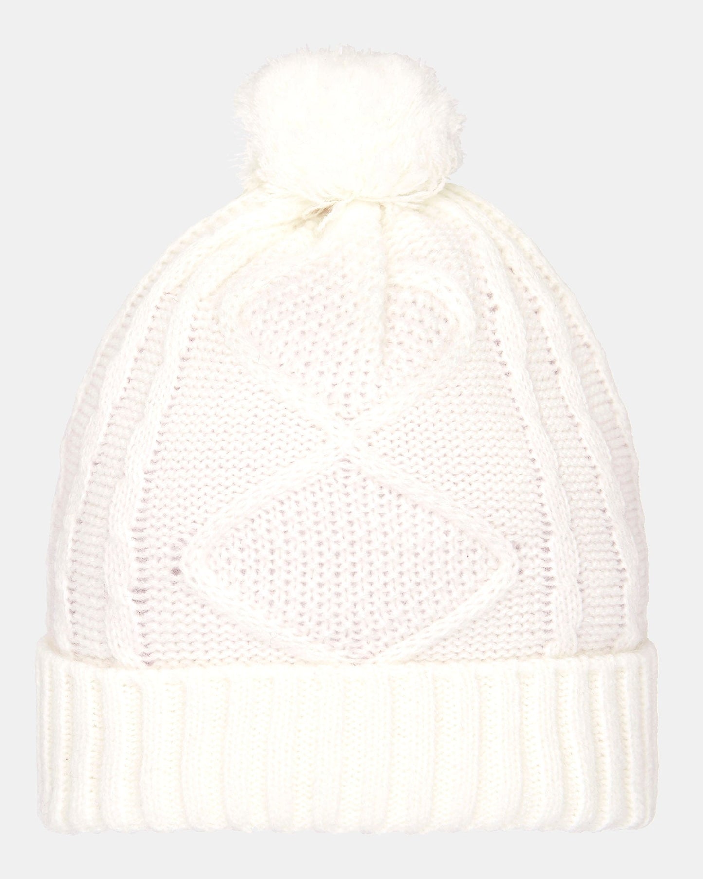 Beanie Brussels features an inspired cable knit and playful pom pom. The fleece lining offers protection from the elements and creates a versatile winter accessory.