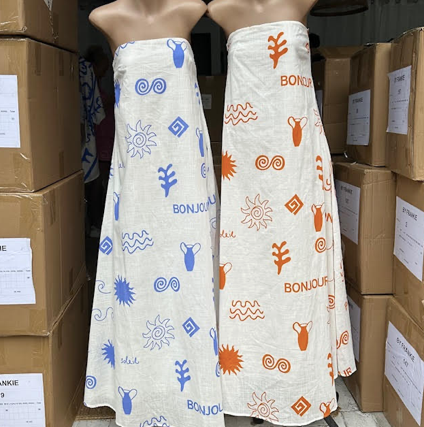 Strapless linen maxi dress.