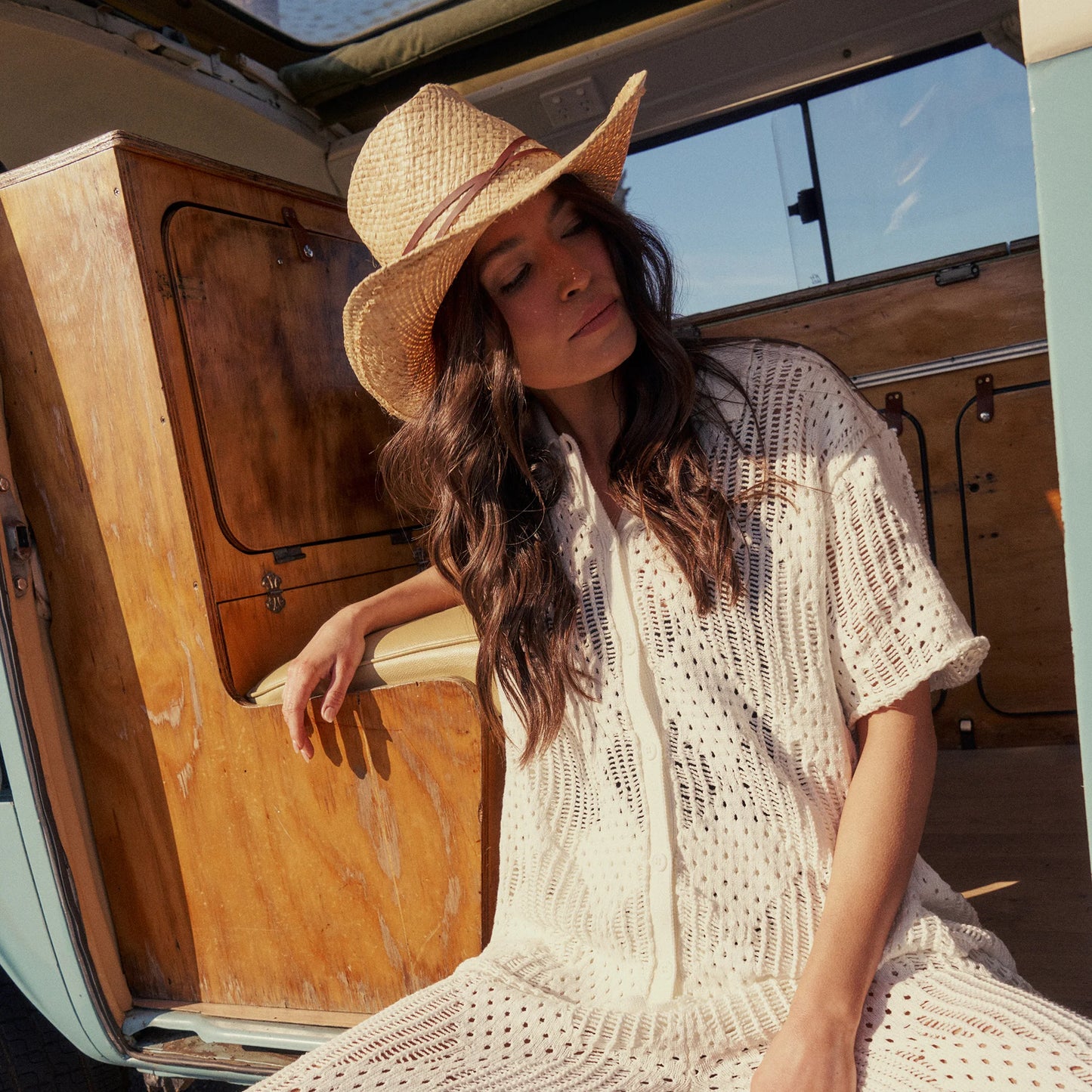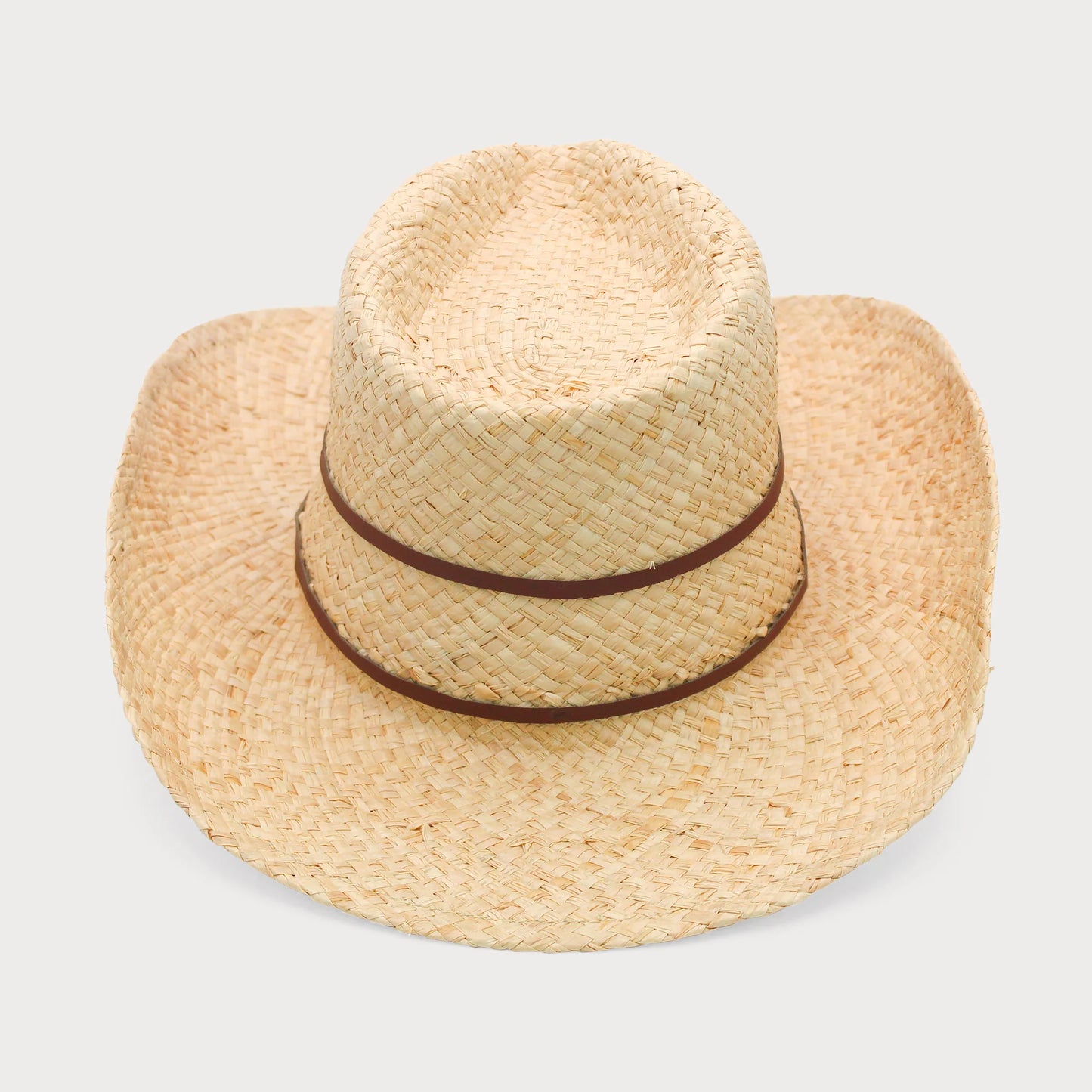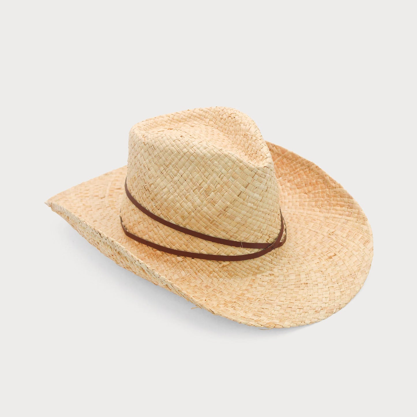 The Ace Of Something Caspian Cowboy Hat in Natural is a chic style, perfect for everyday wear, or an unforgettable adventure. The cowboy brim ensures warm weather can be enjoyed in comfortable shade, while the elegant trim adds a striking contrast that highlights the shape of the crown. Includes a bendable wire around the edge of the brim to help styling, and to ensure the shape is maintained, even after long wear. The thick, woven raffia, ensures comfortable and durable wear during endless sessions of stylish relaxation and exploration. Finished in our Melbourne Studio.