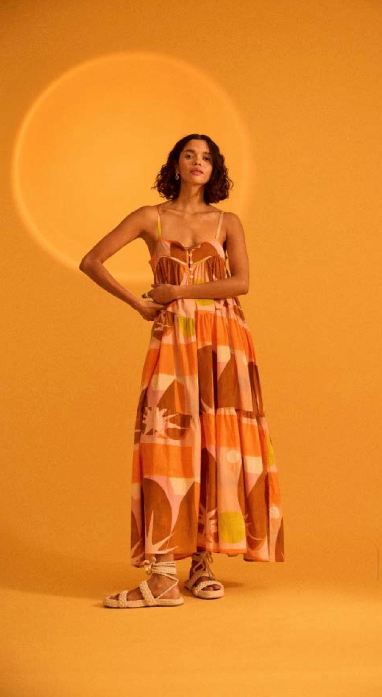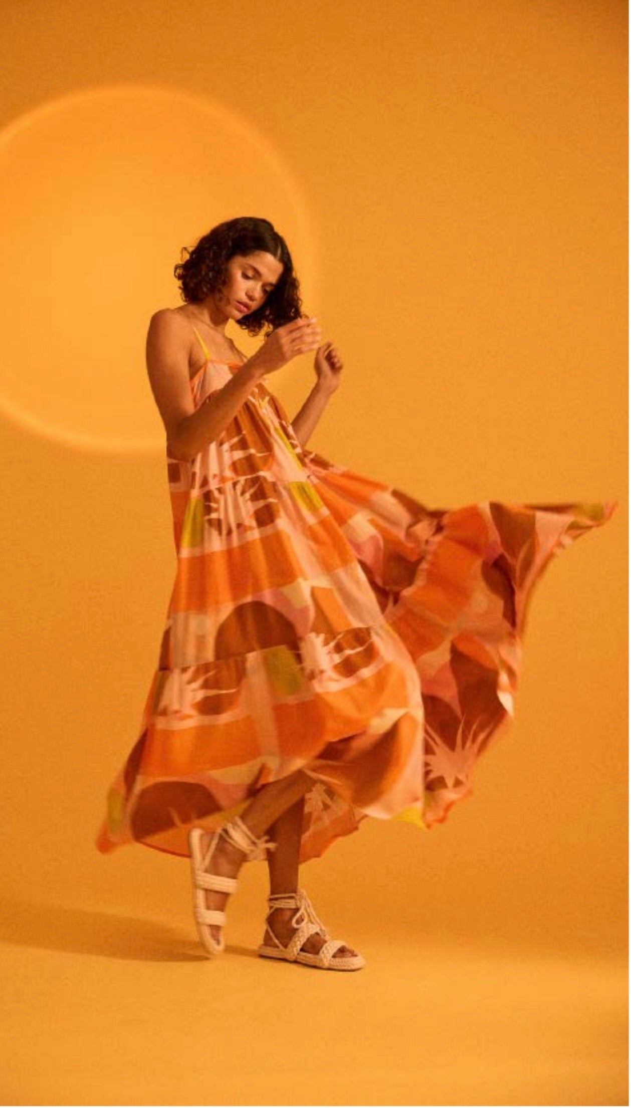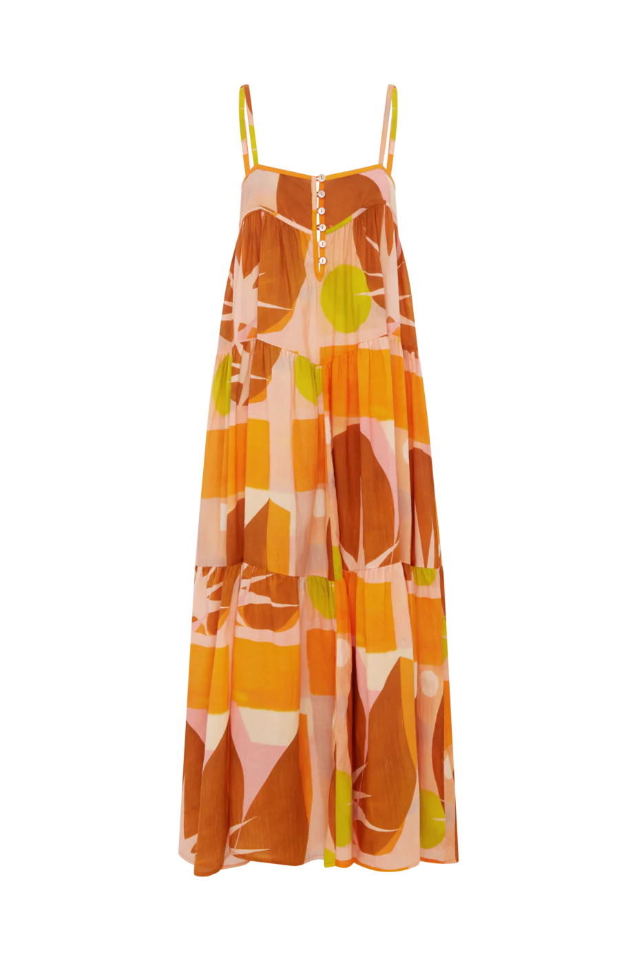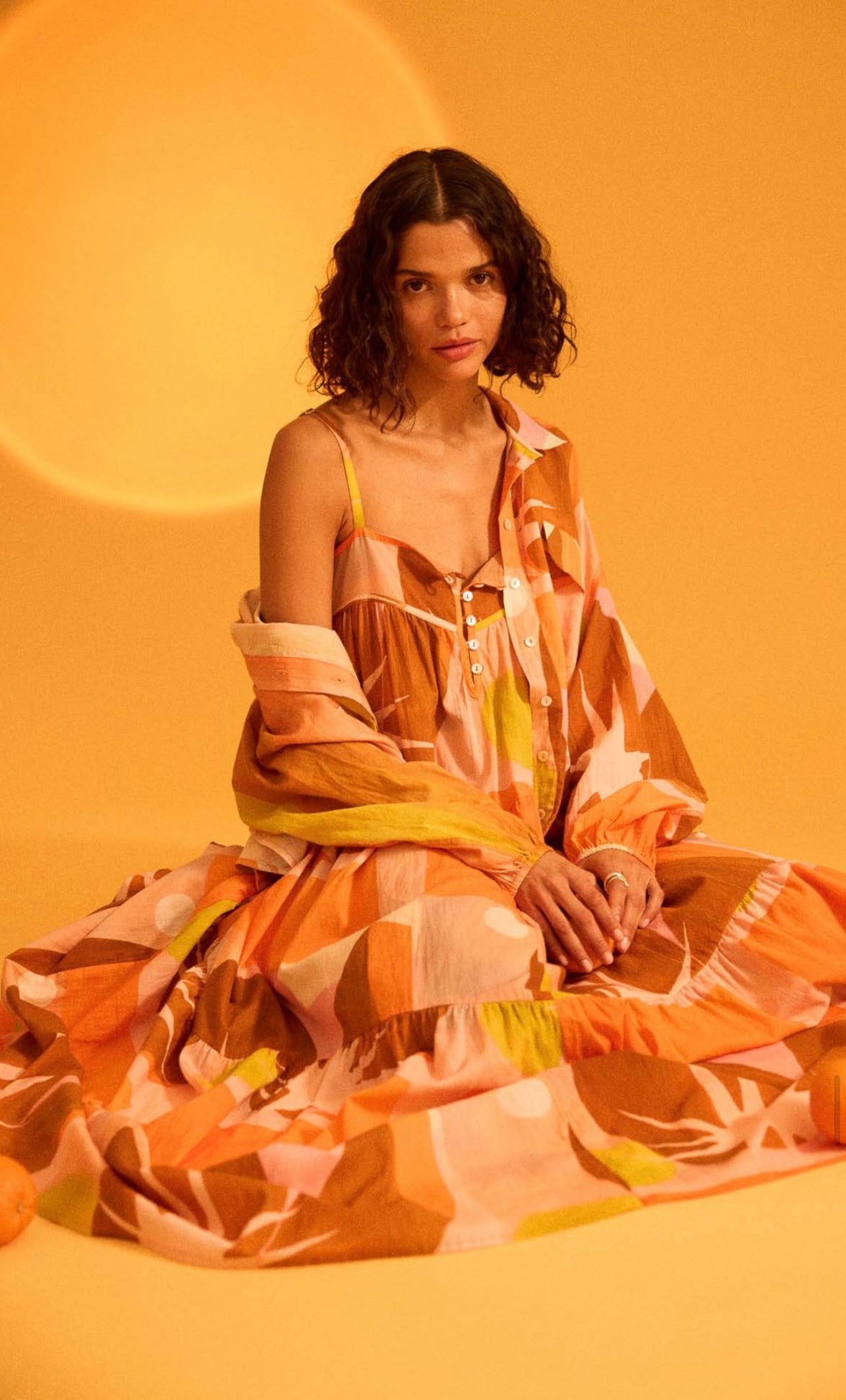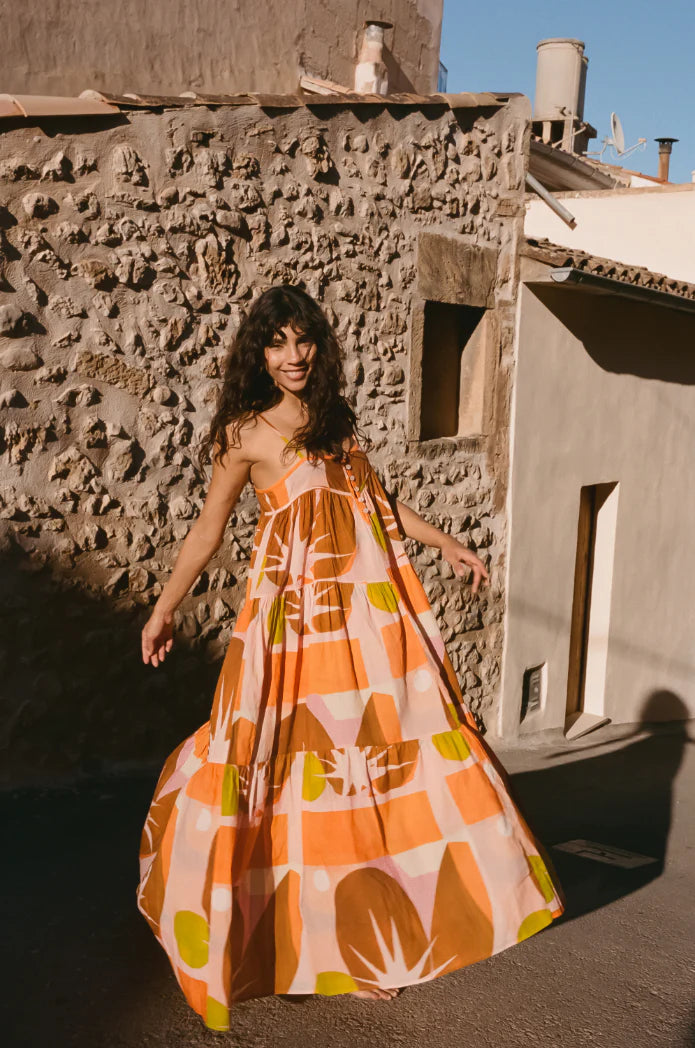 The Dakotas Neroli Maxi Dress, a best-selling Kinga Csilla silhouette, is a voluminous and effortless statement piece. Crafted from lightweight fabric, it showcases the bold abstract Dakotas print. This flowing, oversized dress embodies both comfort and style, with a billowy shape that moves beautifully.