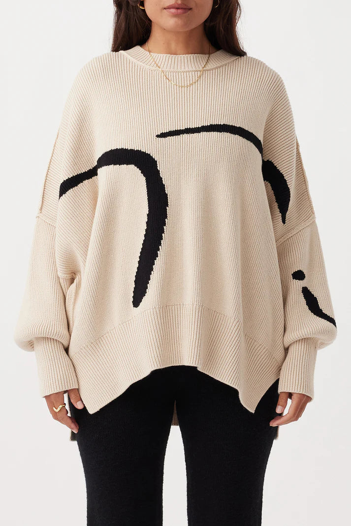 Hazel Organic Cotton Sweater - Sand & Black