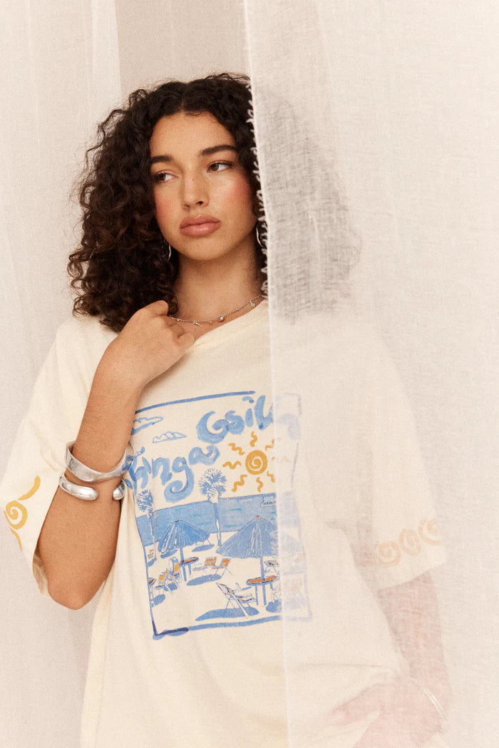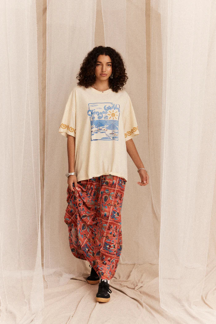 This style is intentionally oversized for a relaxed, effortless feel. We recommend taking your true size, but if you prefer a more fitted look, consider sizing down. Even with a smaller size, the tee will maintain its signature laid-back silhouette. Visit our sizing and fit guide for more details.