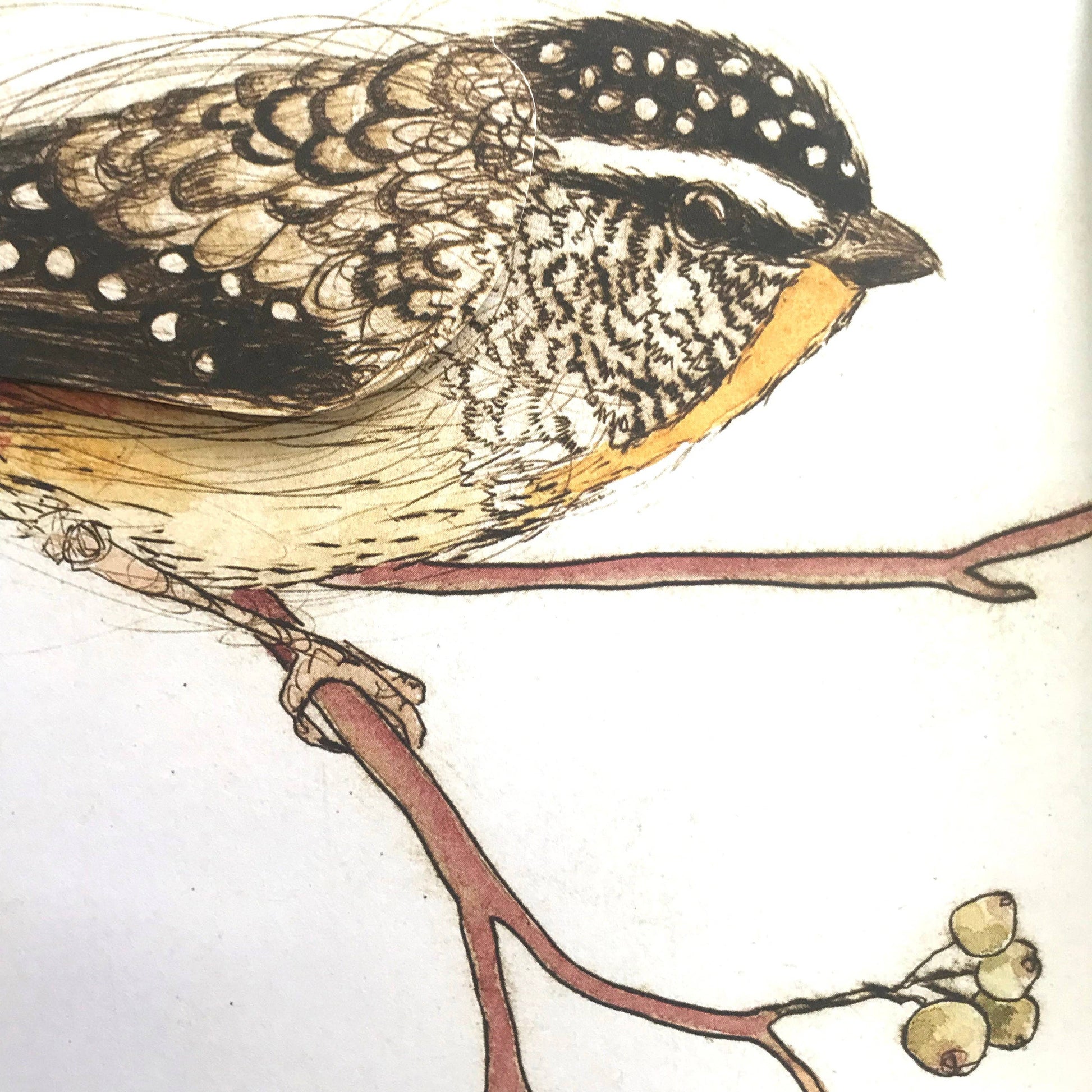 • Features 12 birds: White-browed Scrubwren, Red-browed Finch, White-winged Chough, Spotted Pardalote, Diamond Firetail, Scarlet Robin, Grey Shrikethrush, Brown Treecreeper, Golden Whistler, Dusky Woodswallow, White-plumed Honeyeater, Fantailed Cuckoo.