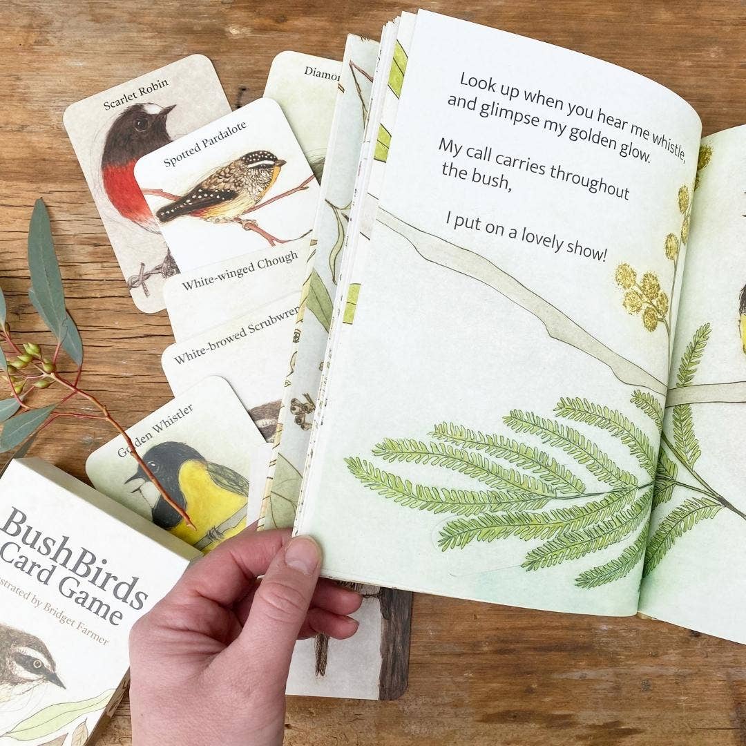 An interactive children's book exploring 12 Australian bush birds through rhyming clues and hidden flaps. Included on the CBCA Notables list (2022).