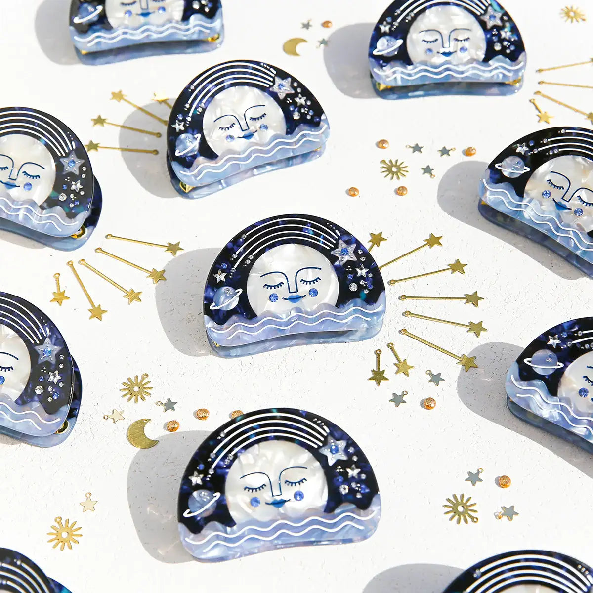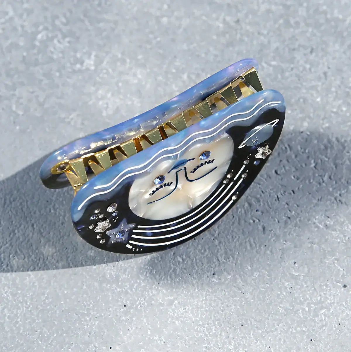 All Hair Claws and Clips are designed by Jemima Kingston in her Australian studio. They are made outside of Australia and mainly comprised of a plant based biodegradable acetate also with a mix of regular acetate, pearls, paint work and metal components.