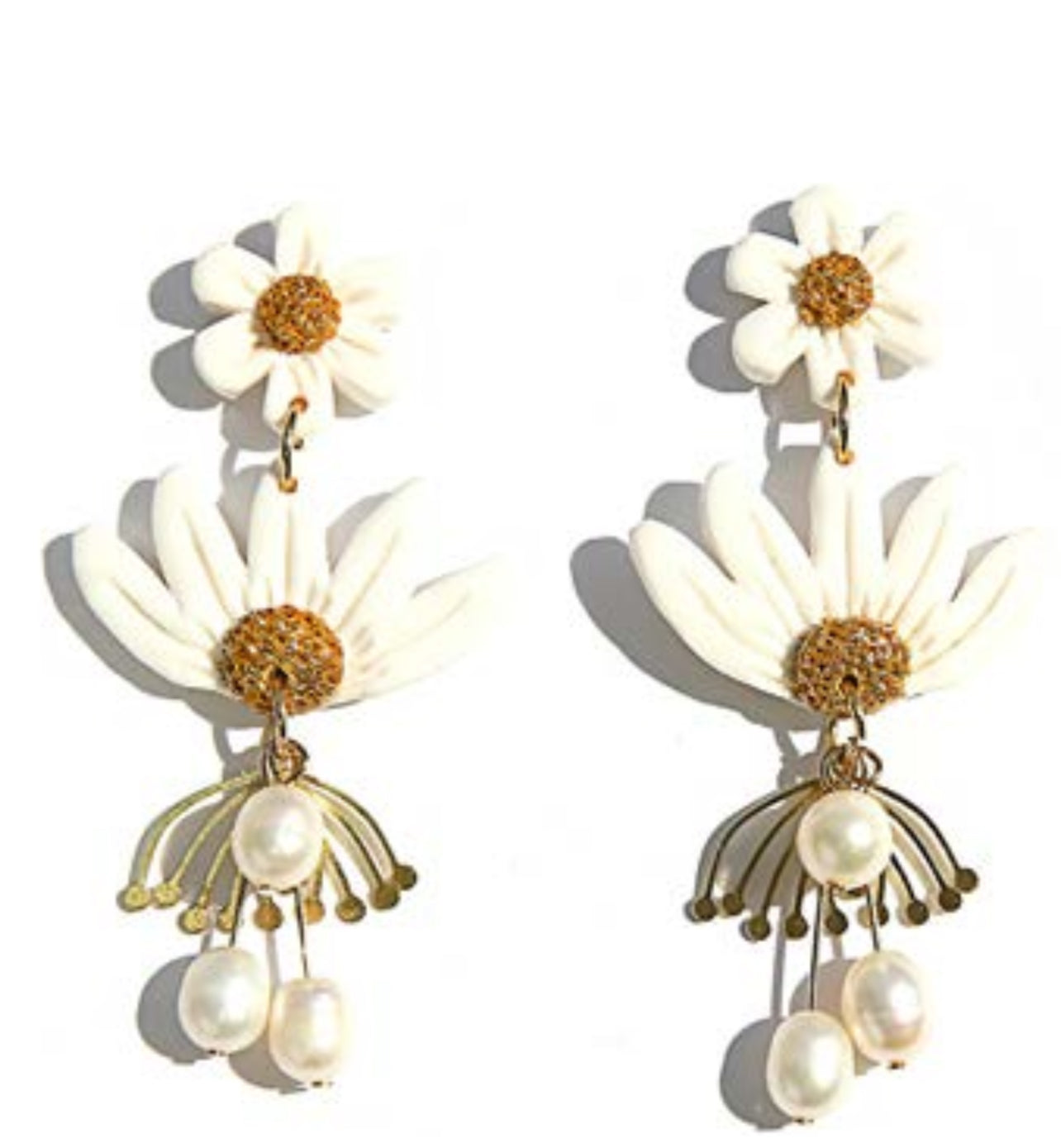 White Pearl Blossoms Earrings